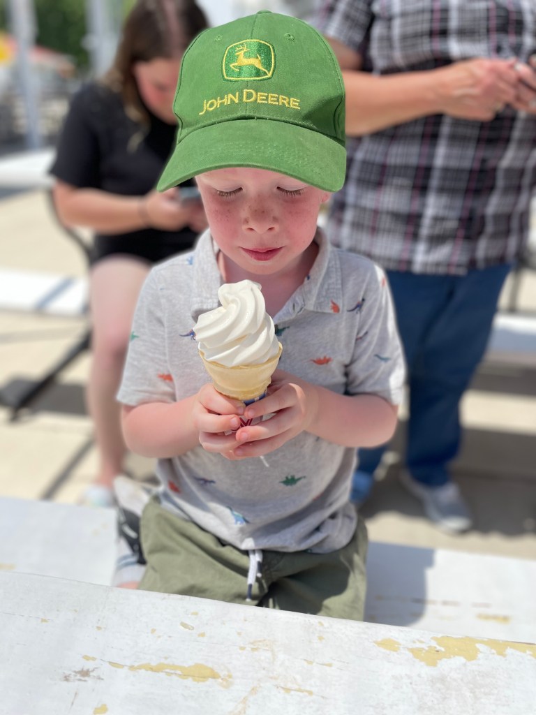 It would be fair to say this looks staged, but he didn’t even know I’d gotten out my phone. This was a genuine moment of fathering hard; foot parking stroller, holding cone, cup and spoon to mitigate who gets the next bite.