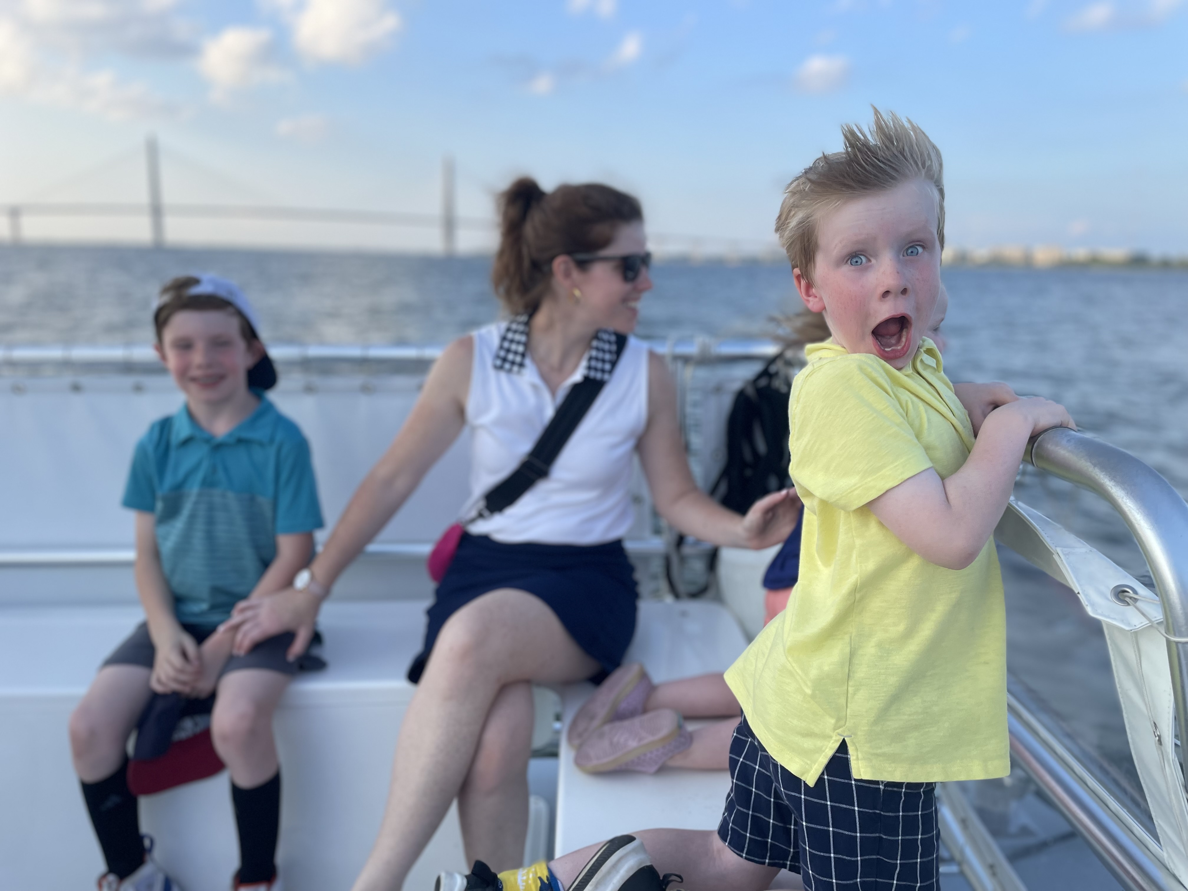 There’s one place alligators can’t drag you beneath the surface and drown you, and that’s on a boat. So across the harbor we went for an escape from the heat and a view of that perfect Arthur Ravenel Jr Bridge.