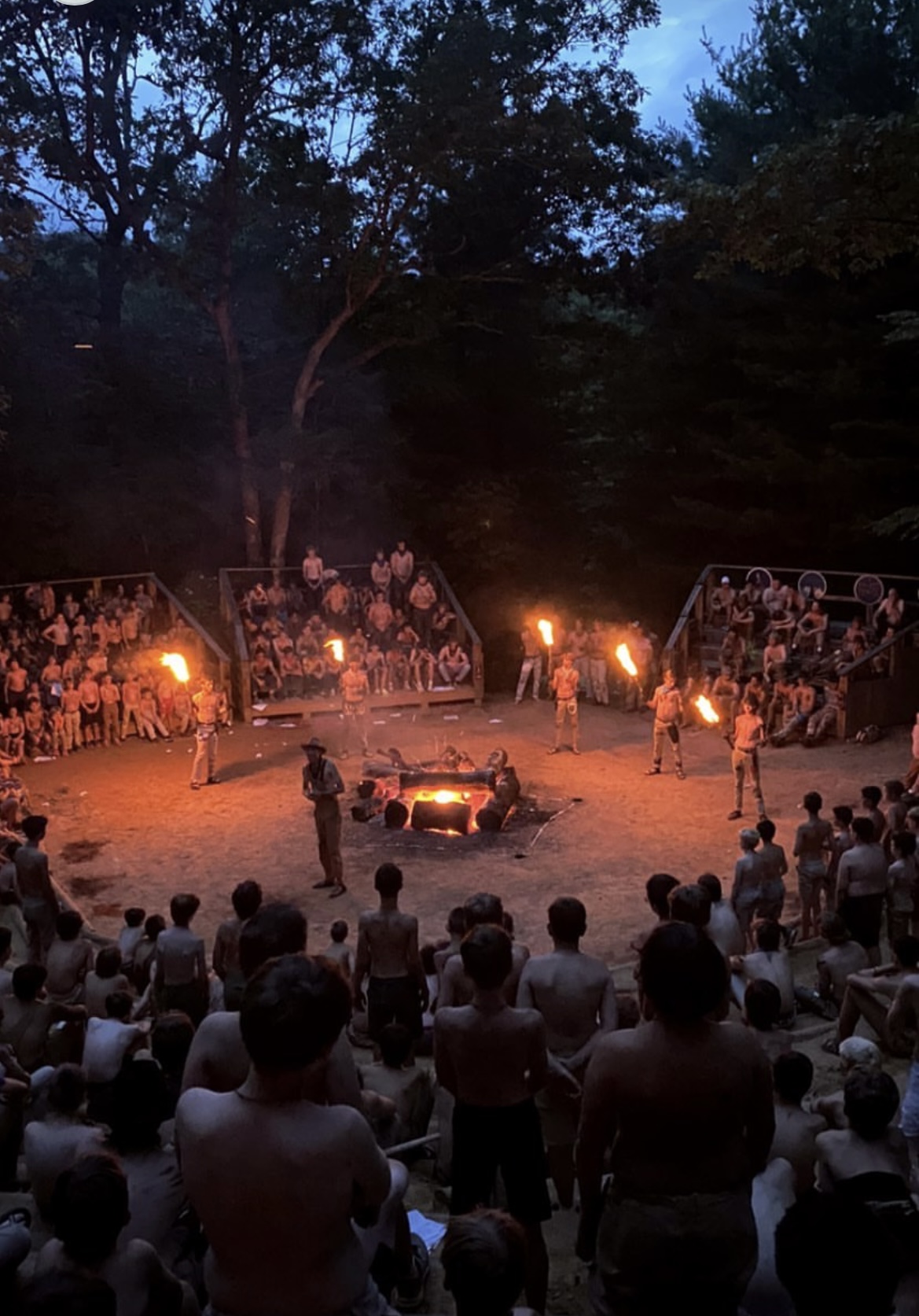 The camp has 100-year-old traditions like this one, called Council Ring, of teaching young boys about leadership, growth in being young men of Christ, responsibility, valor, etc. They receive recognition for challenges and victories accomplished that week and are spurred on to the week ahead.