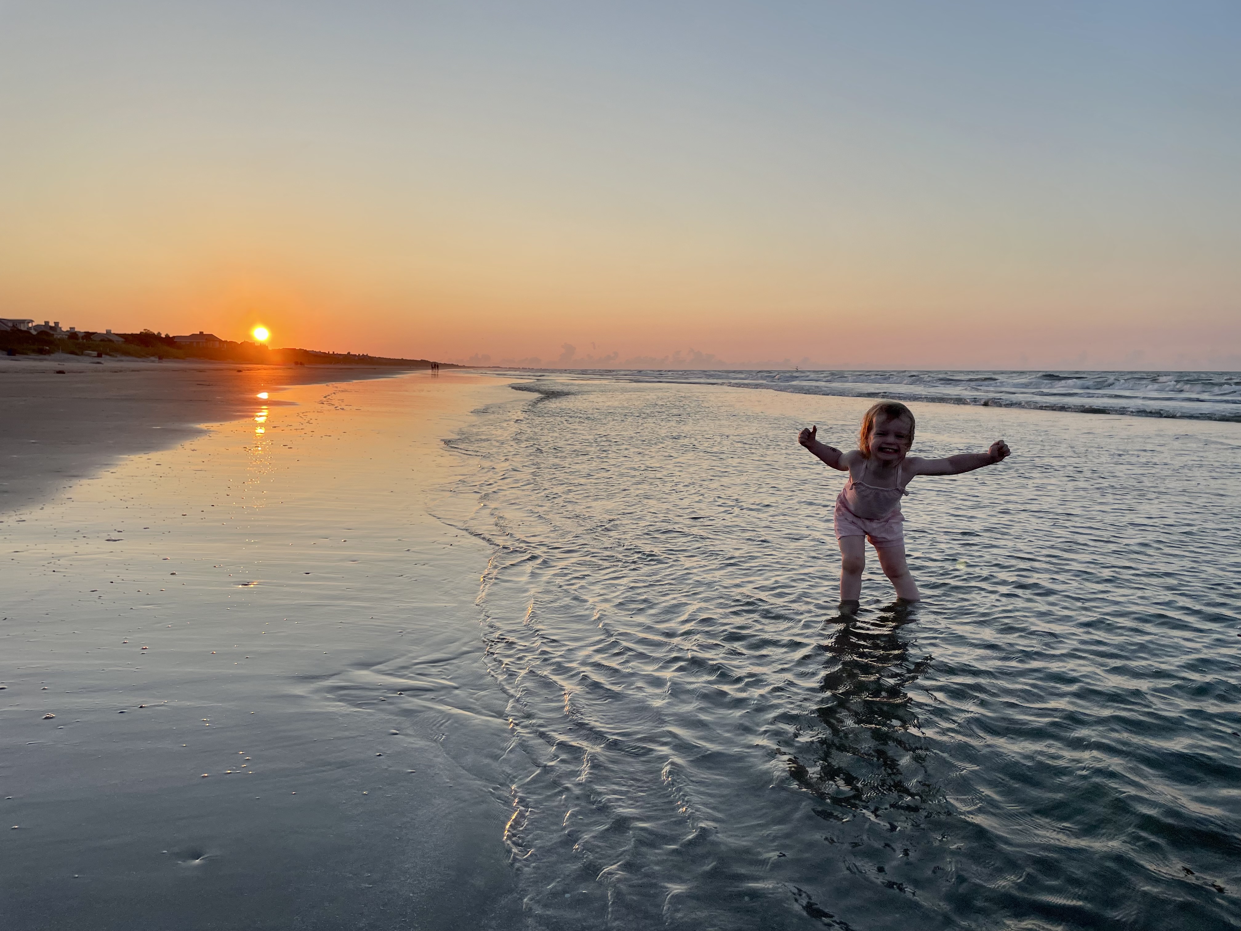 3. We all marveled that the waves were so calm, the ocean floor didn’t drop off into an abyss, and the distance from the beach grasses to the water was a football field as flat as a pancake.