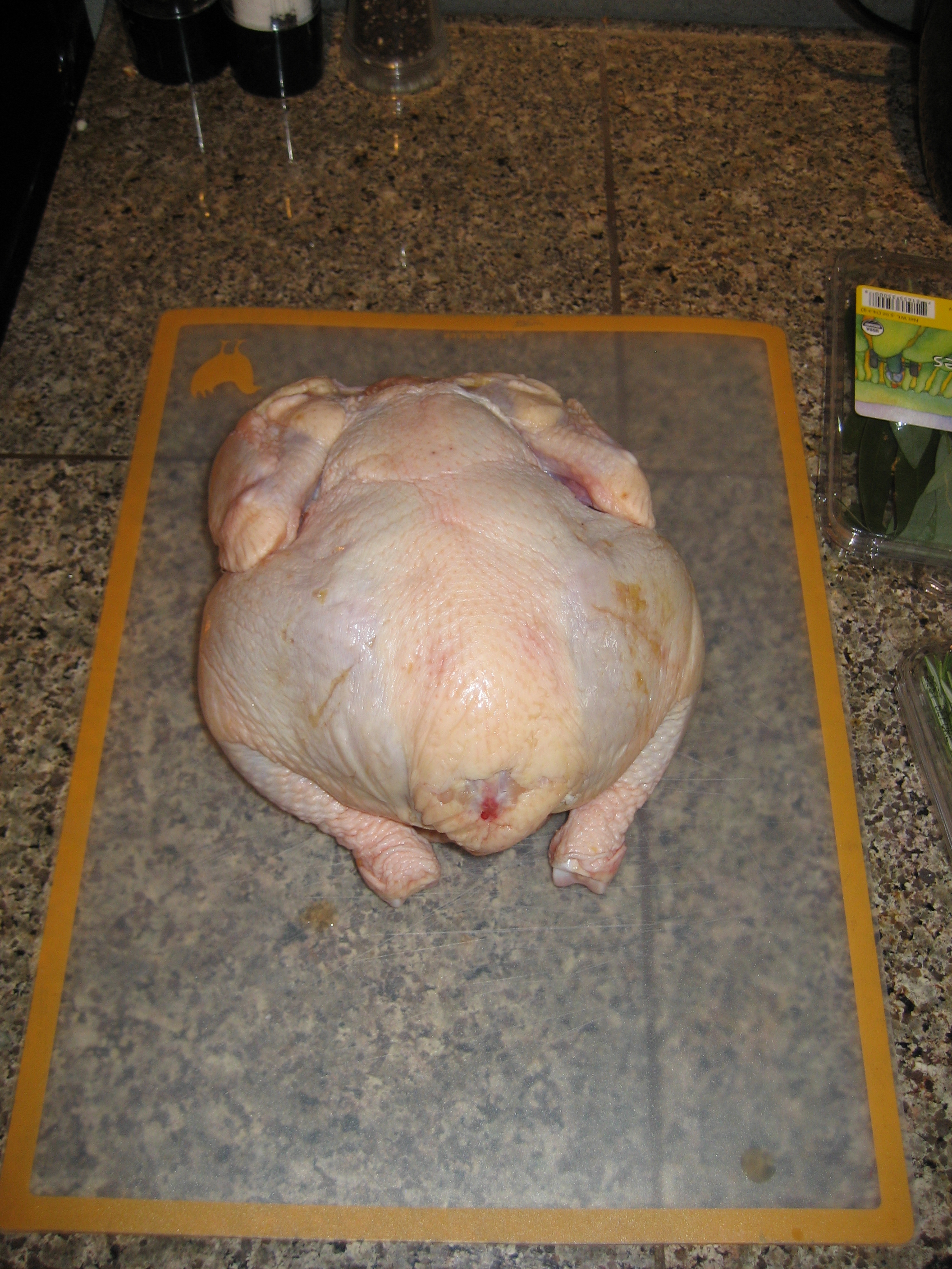 So, without actually touching it, I managed to get this 4.5lb chicken from its packaging to my chicken-only cutting board.