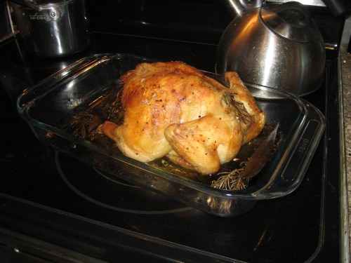 The resulting bird was really a thing to behold: all golden brown, perfectly crispy on the outside and tender and juicy on the inside (and by inside, I mean the meat…not the “cavity”).  Mike was astonished that such a thing of beauty would come from the work of my hands, especially since he knows about my aversion to poultry.