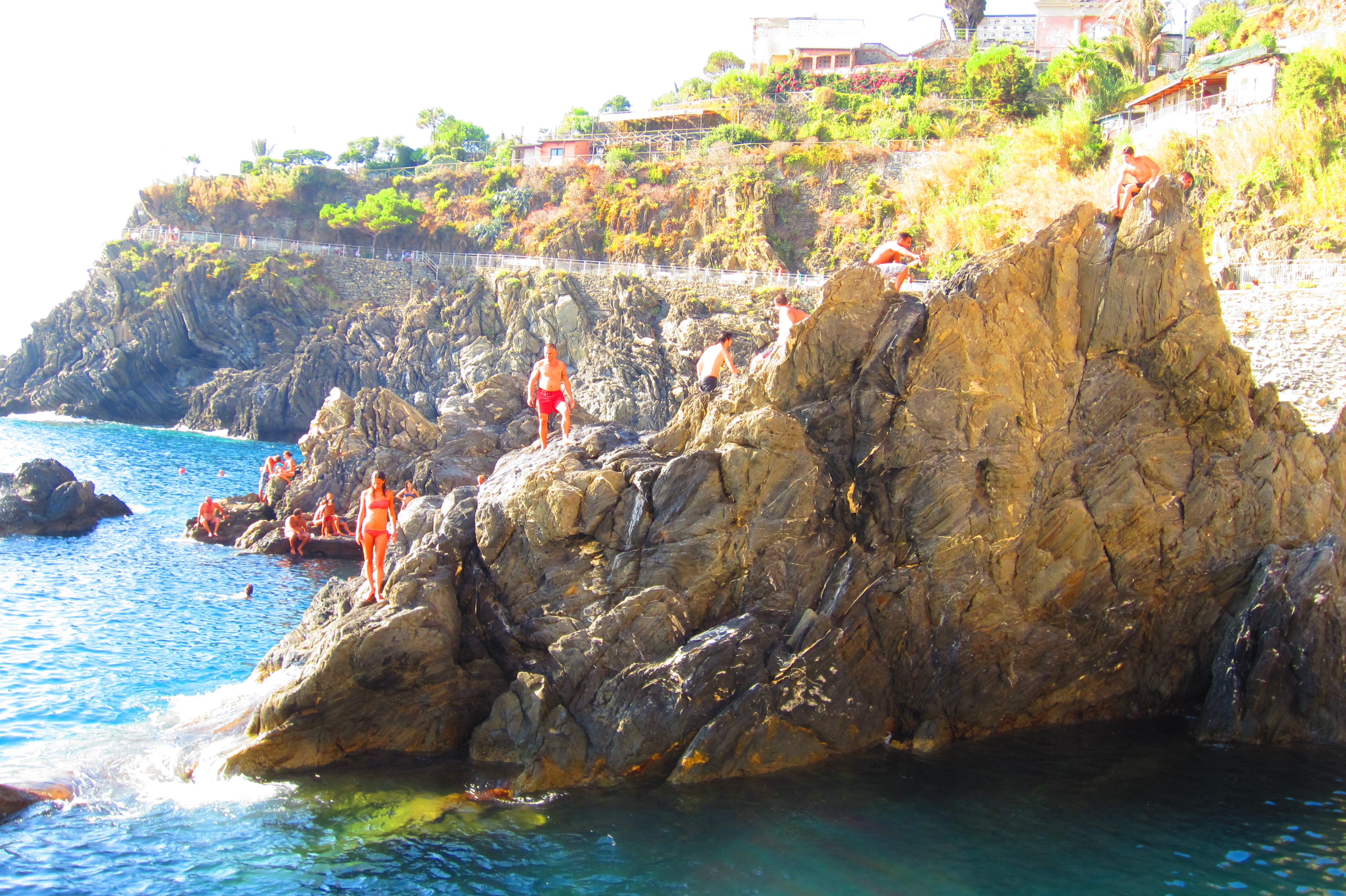 The good people of Vernazza kindly provided a hose to rinse off the salt, and the swimmers rinsed while we found a table for a glass of wine and refreshing Pellegrino.