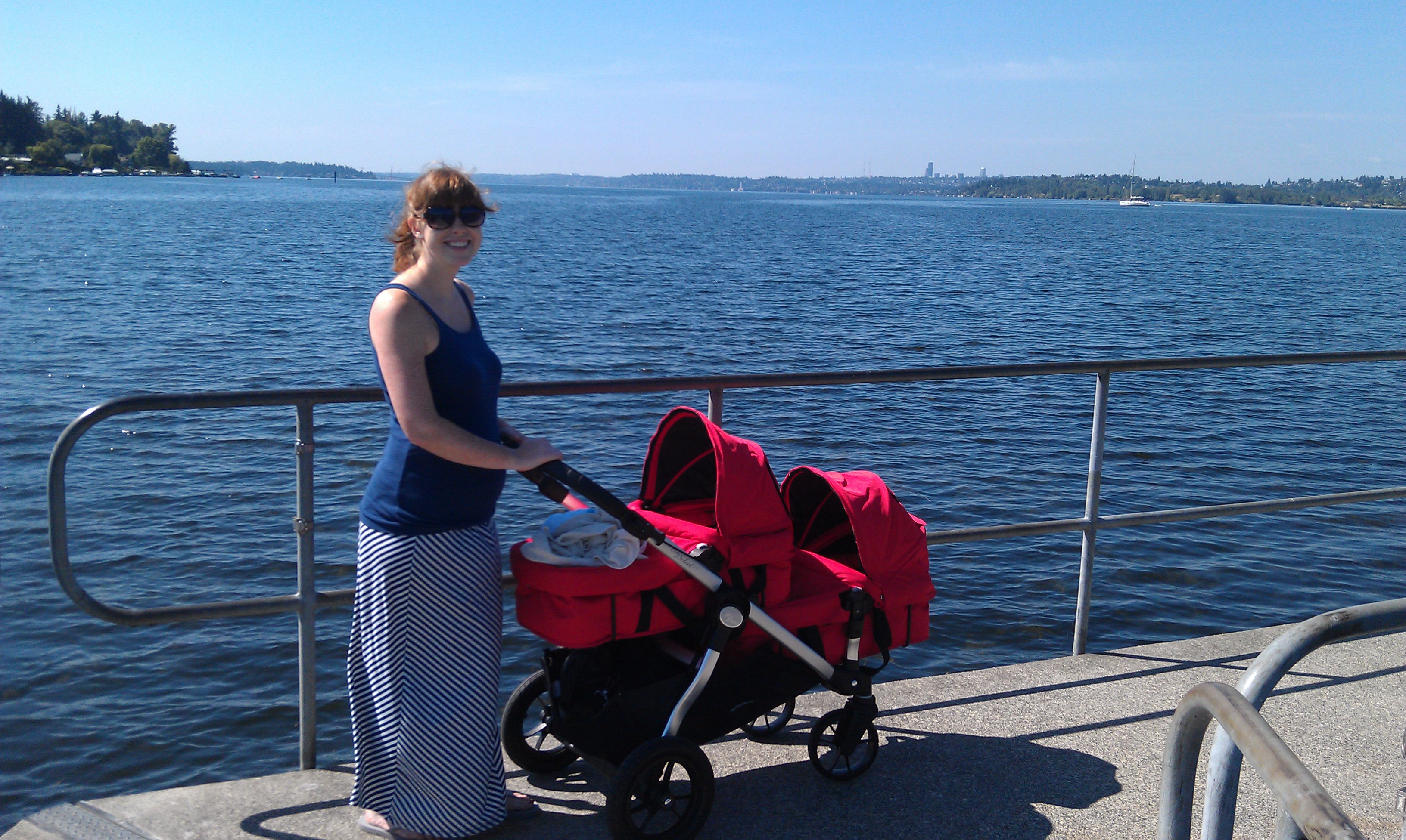 The day after Henry was released from the NICU (babies were 18 days old), Mike and I visited the Juanita waterfront for our first stroll with the bambinos. We walked around and laughed about how I looked like a woman pushing newborn twins while seven months pregnant.