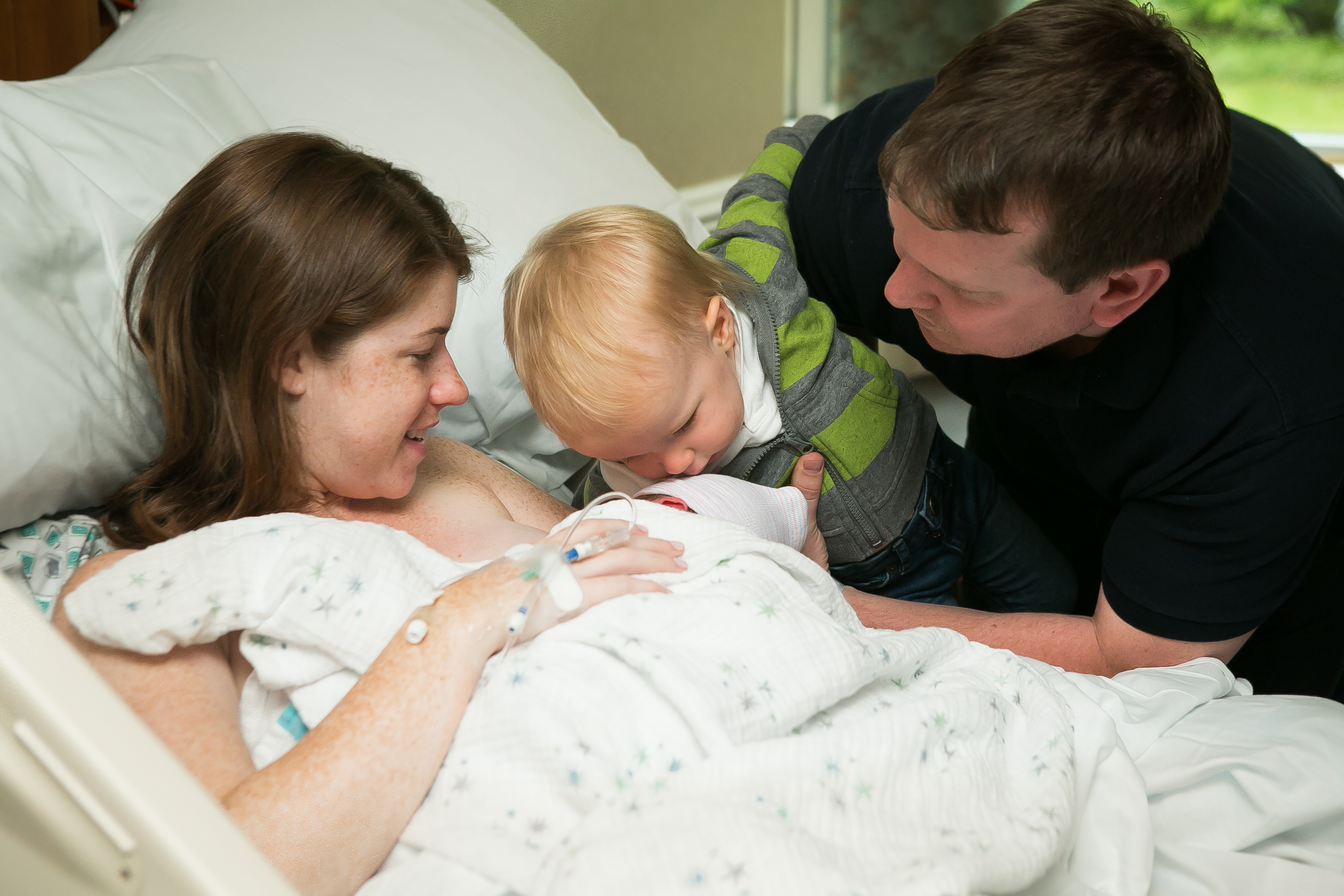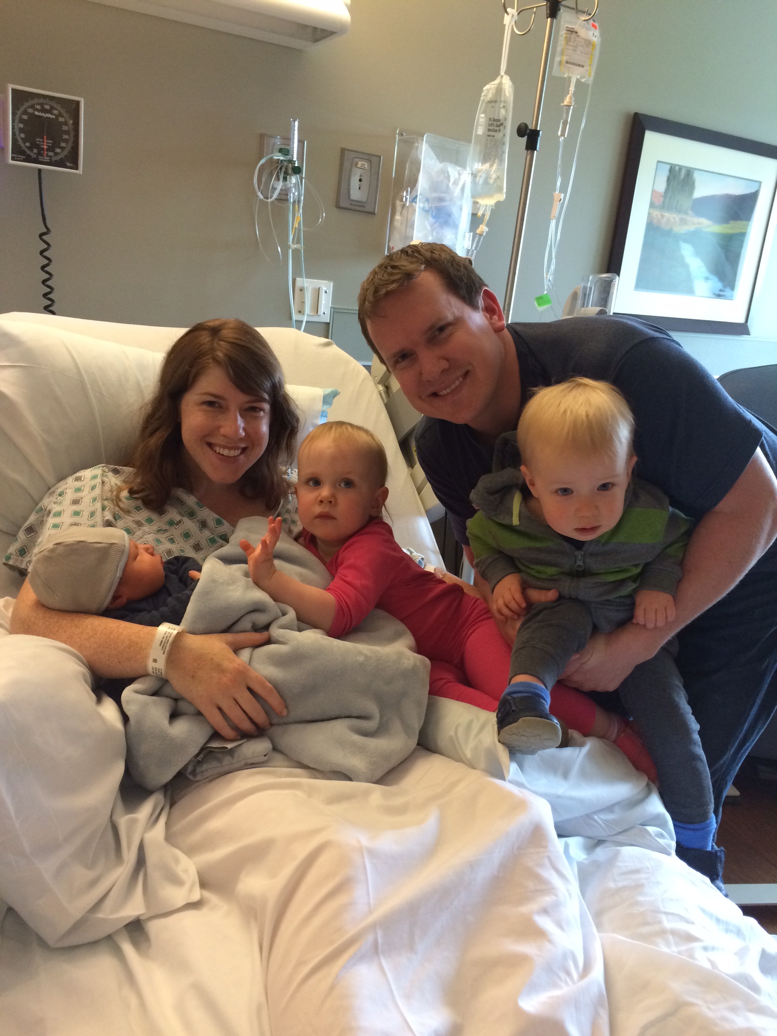 They were so sweet, but also deeply in denial. They didn’t like the sight of mama in the hospital bed, and they didn’t like the sight of this newcomer in her arms. Mostly they wandered around the hospital room and ate snacks that we’d ordered. By the end of the visit though, Arden was tenderly pointing out all of Hunter’s features. There’s his little ears, here’s his nose. Henry was having none of it. And that’s okay. We knew they have their whole lives together.